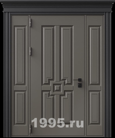 Стальная дверь с металлофиленкой, вставками по бокам, карнизом и порошковым покрытием RAL 7022 (тип №4)