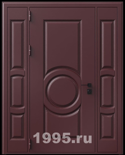 Стальная трехконтурная дверь с металлофиленкой, вставками по бокам и порошковым напылением RAL 3007 (тип №5)